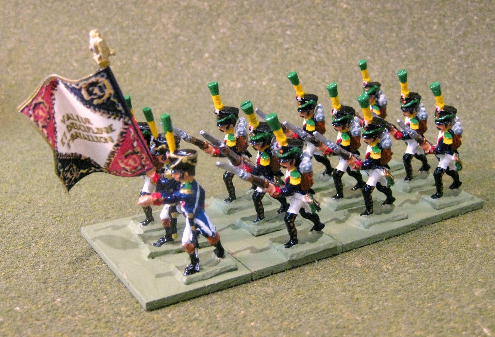 French line infantry painted as line voltigeurs, with officer and standard bearer from the French line infantry command group: